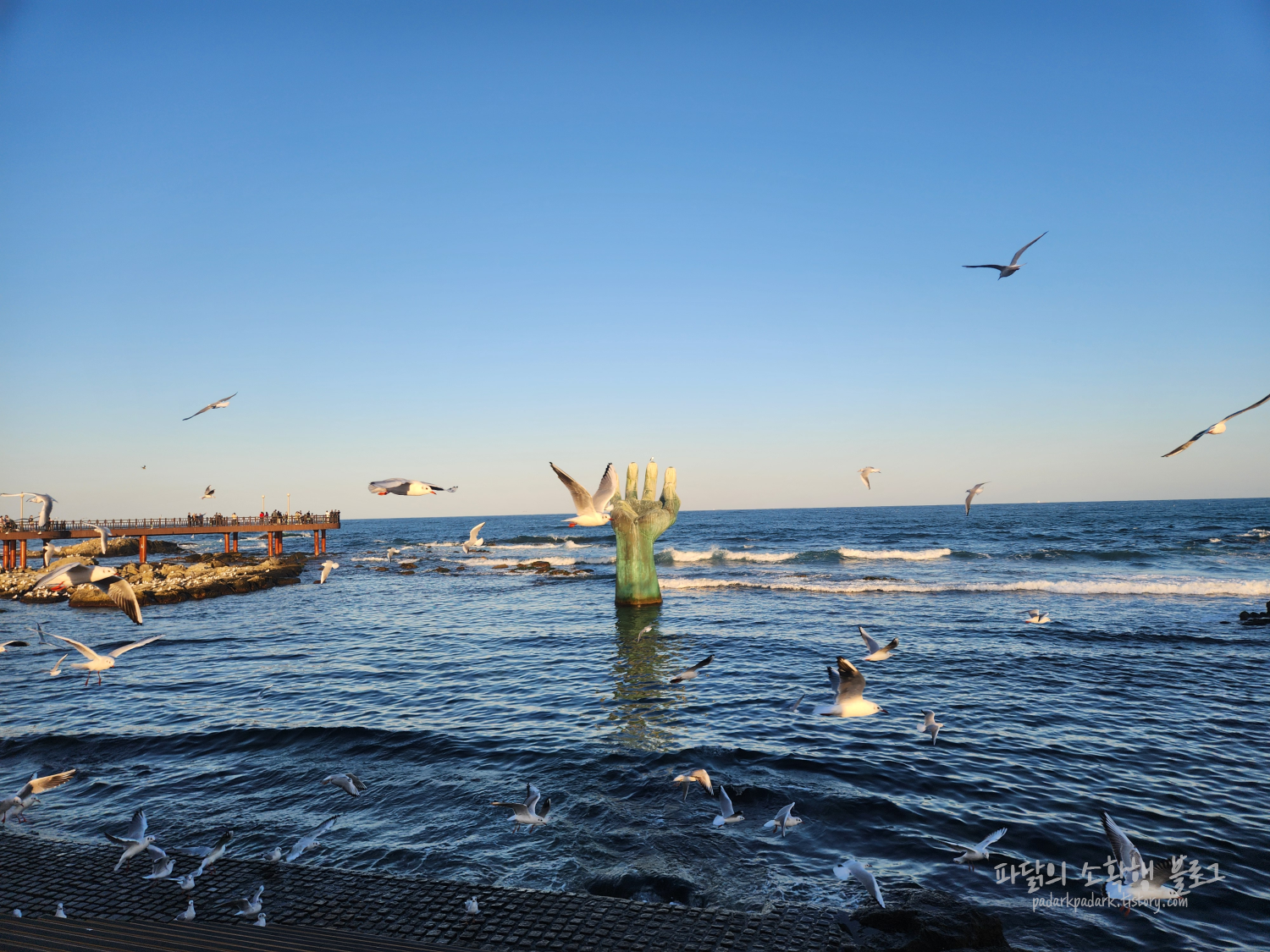 사실 갈매기로 더 유명하지 않나 싶다. 저 상생의 손은 항상 갈매기와 함께... 일출로 유명하지만 여행 일정상 마지막이었기에 일몰을 보는 걸로. 아이와는 안 산다고 약속을 했지만... 결국 새우깡 한 봉지 샀다. 반은 자기가 반은 갈매기가 먹었다.