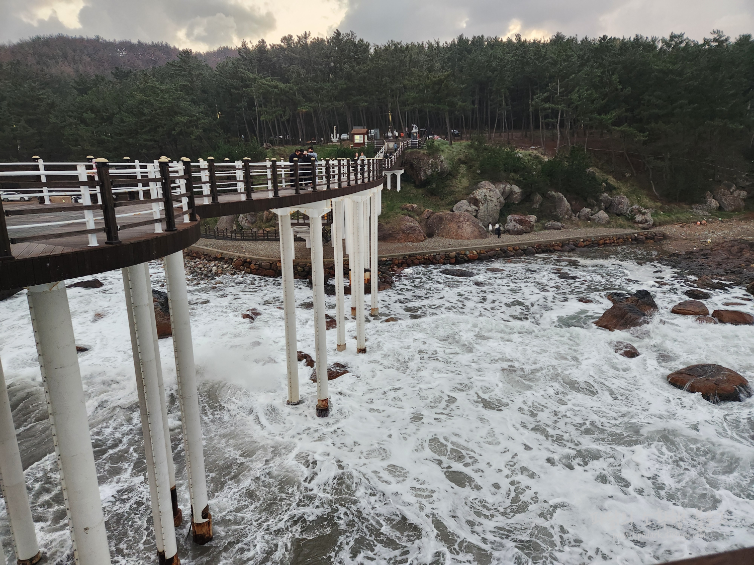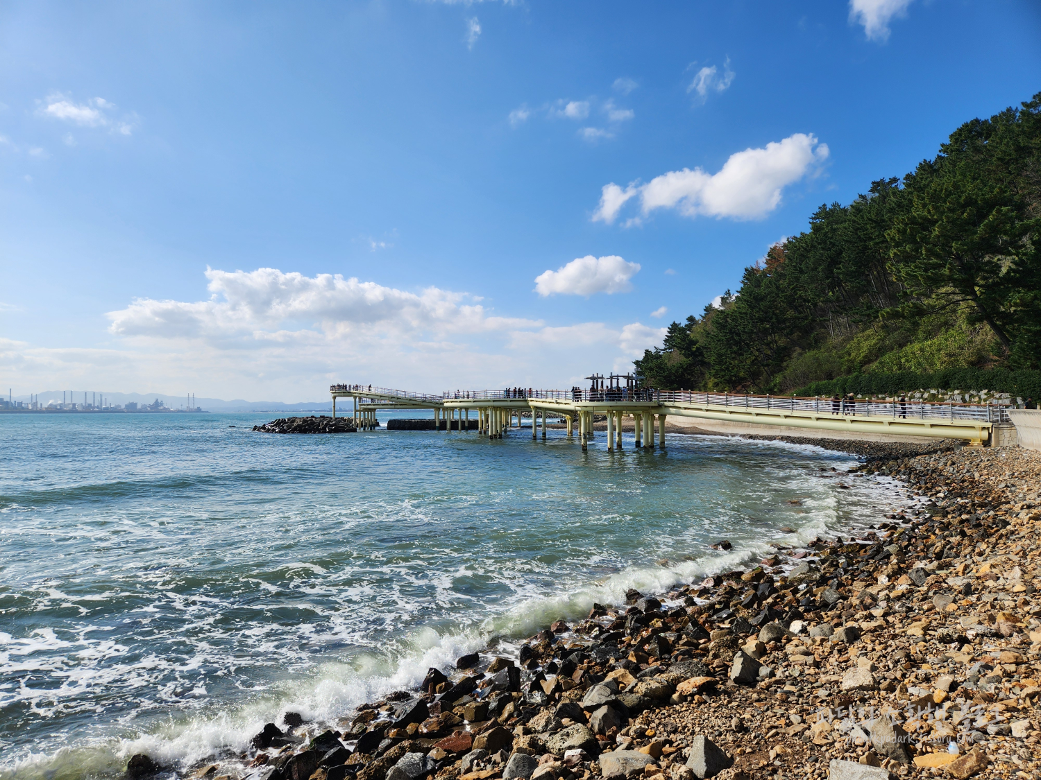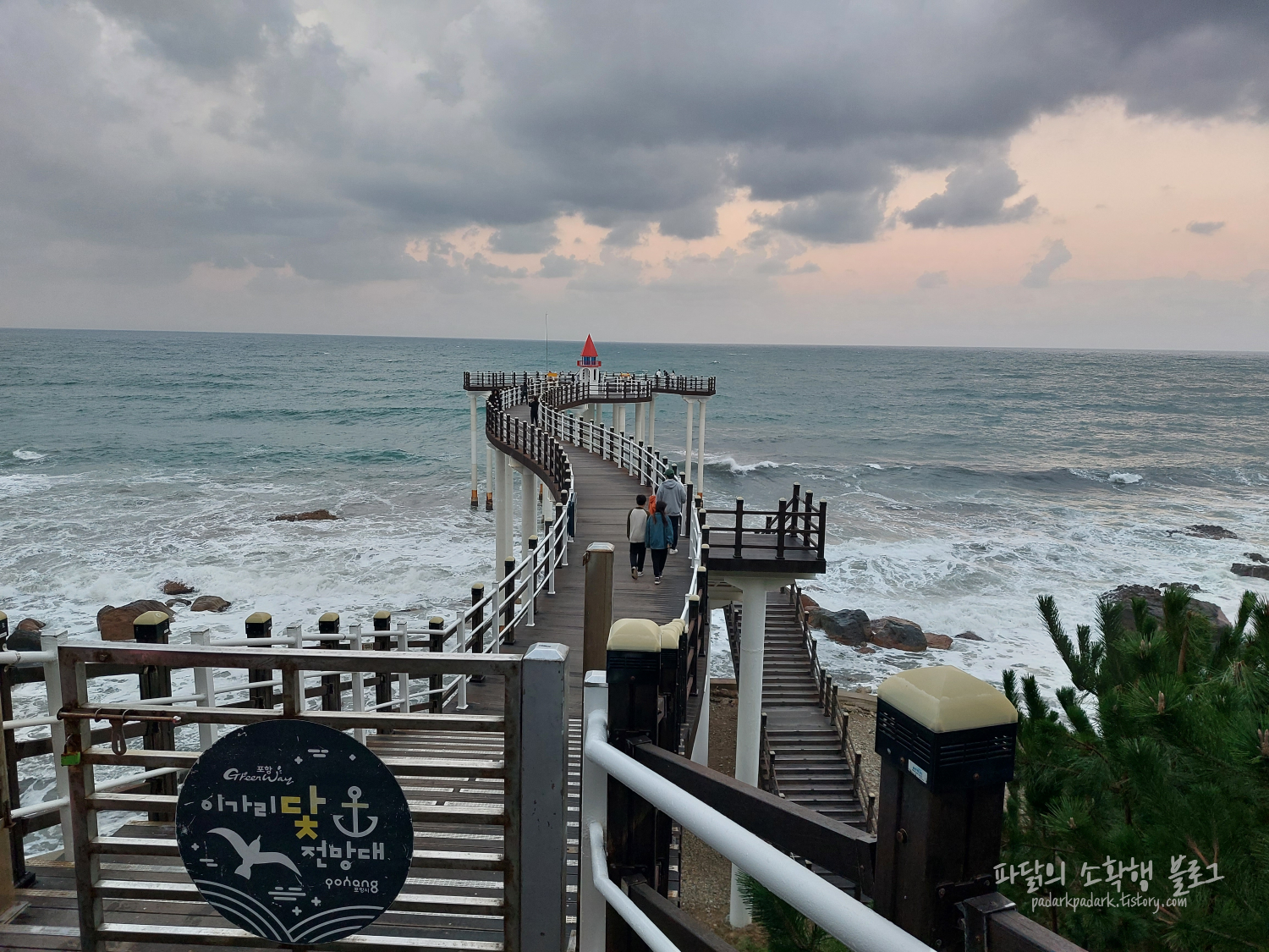 해안 산책로가 스카이워크로 이어져 있어 산책로와 함께 들리면 좋다. 환호공원에서 살짝 거리가 있긴 한데, 날 좋을 때 여유롭게 걸어볼 만 거리이기도 하다(대략 2Km). 요즘 대부분의 전망대가 그렇듯이 중간에 투명 유리로 된 부분이 있고, 가운데 저 작게 물놀이 공간처럼 생긴 곳은 자연해수풀이라는데... 여름에만 개방을 하는지, 최근에는 개방을 안 하는지 닫혀있었다.
