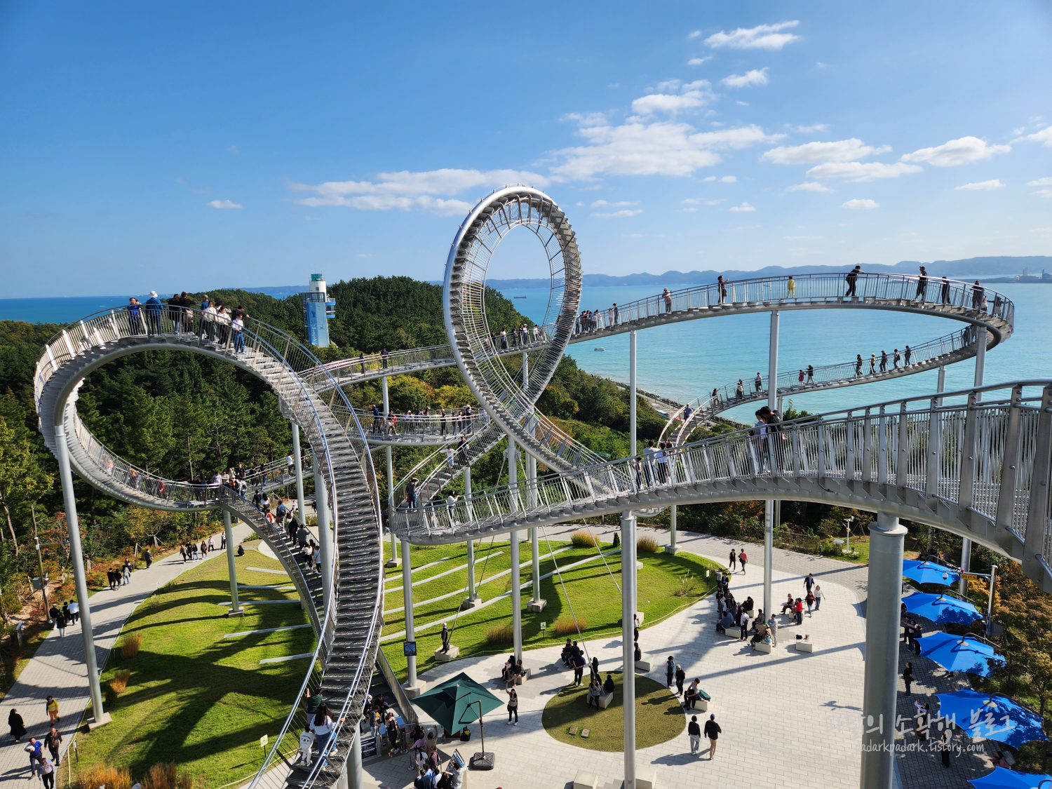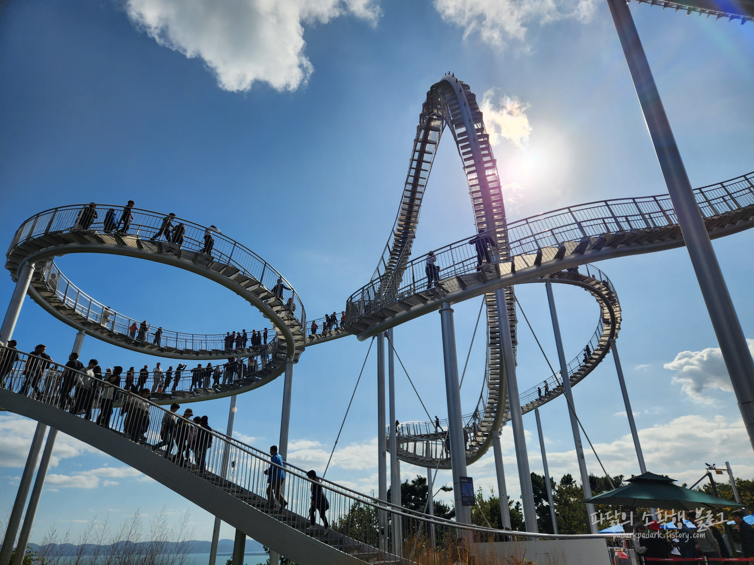 환호공원 내 333 미터 짜리 구조물로, 717개의 계단으로 이루어져 있다고 한다. 구조물 자체로 재미있는 놀이기구 수준에다가 영일만 일대가 한눈에 내려 보이는 전망대 이기도 하다. 한 번에 150명 정도가 가능한데 바람과 사람들의 움직임으로 꽤나 진동이 있기 때문에, 고소공포증이 없더라도 살짝 무서울 수 있다. 하절기인 4-10월은 저녁까지 운영을 하니 적당한 야경도 볼 수 있다. 동절기는 18시까지만 운영한다.