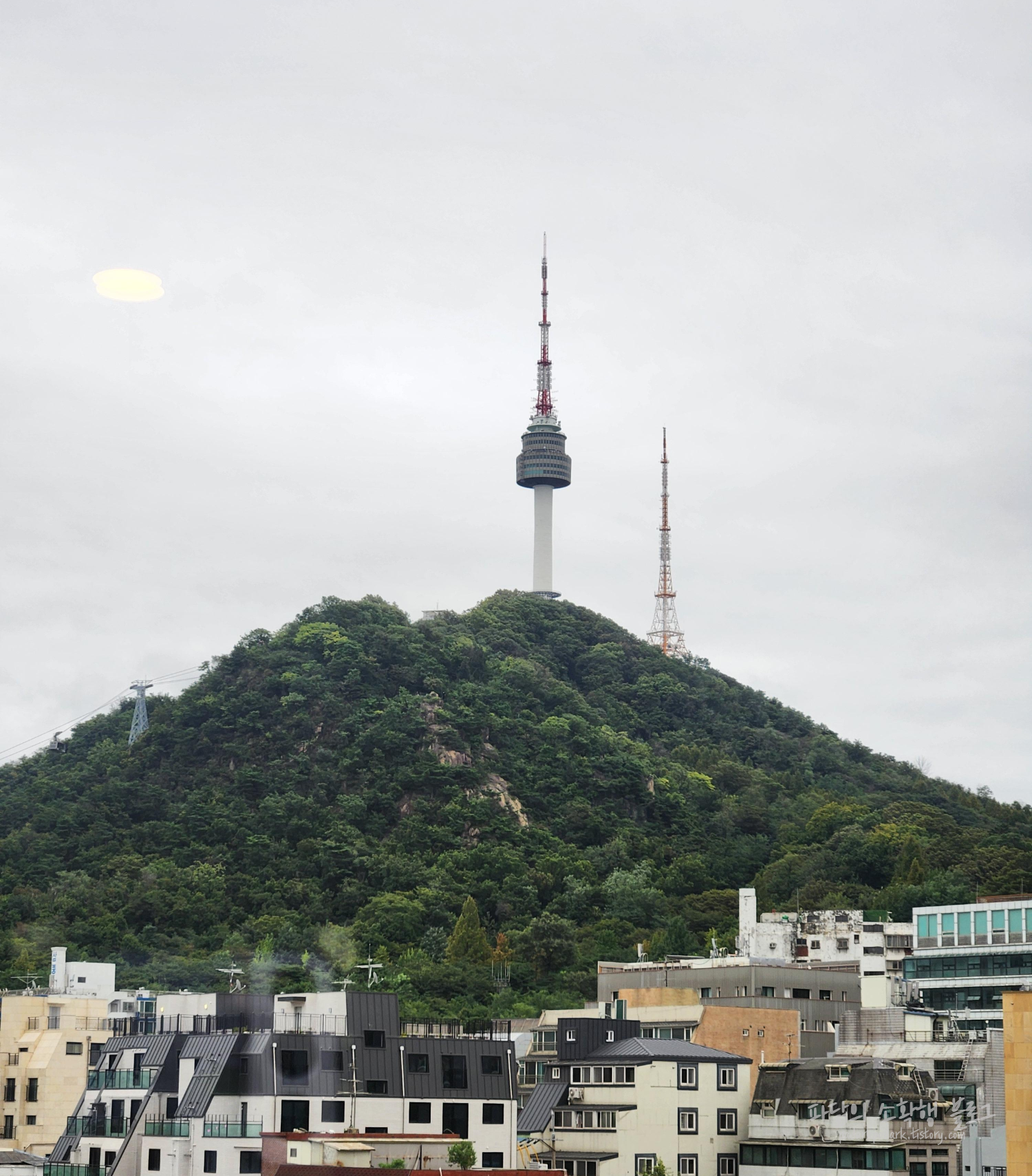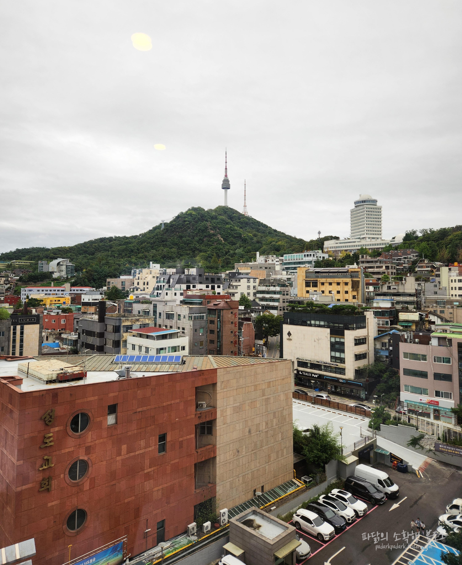 뷰는 남쪽은 남산 뷰다보니, 남산과 타워가 잘 보이는 건 장점. 남산까지 앞에 다른 큰 건물과 대로가 없다보니 명동 쪽에서는 남산이 제일 깔끔하게 보이는 호텔 중에 하나긴 한 것 같다. 너무 바로 앞 저 교회 뷰인 건 좀...