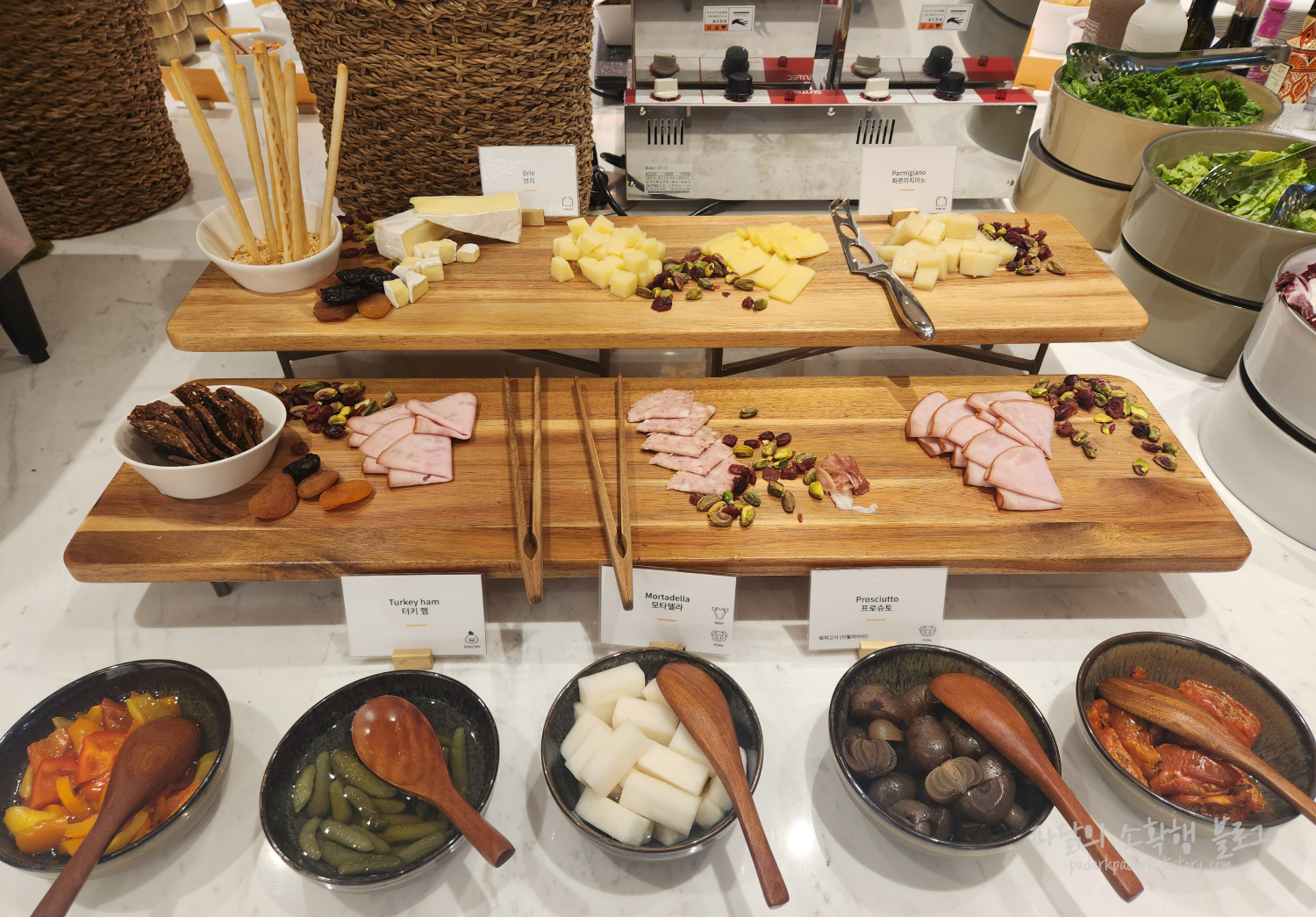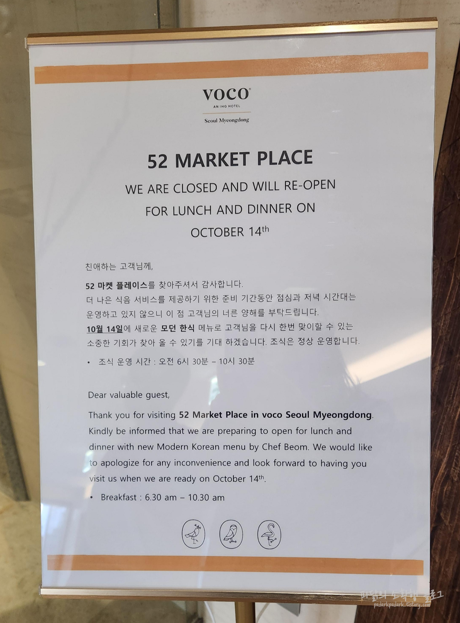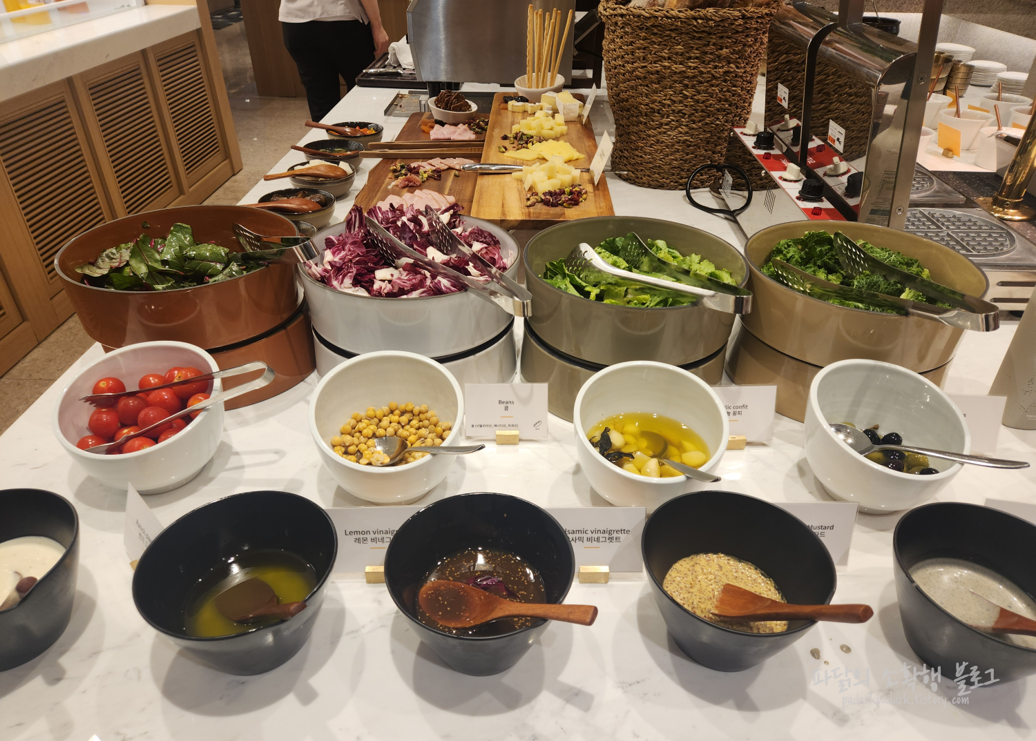 마지막으로 조식. 식당인 마켓52가 아직 중/석식을 안하는데, 그래도 조식 뷔페는 한다. 소프트 오픈 동안에는 클럽 라운지에서 단품 메뉴로 조식을 제공했다고 한다. 조식 뷔페는 나쁘지는 않은데... 뭐 요즘 서울 호텔 뷔페 가격이 다들 미친듯이 비싸긴 하지만 그래도 가성비가 그렇게 좋다고 할 수는 없는 것 같다. 장점이라면 한식 반찬 종류 메뉴가 상당히 많아서 아침으로 백반이나 비빔밥 좋아하면 먹거리가 꽤 있고, 아이스커피까지 디스펜서에 들어있다. 아직 중/석식을 오픈하지도 않았고한쪽에는바 형태 공간도 있는데 다 오픈하면 더 좋아질 듯 하다.