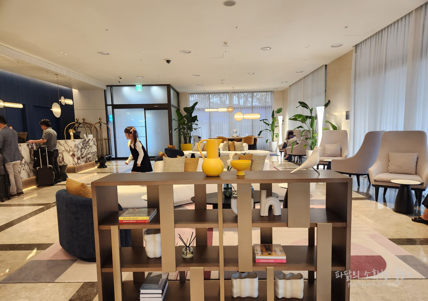지하철 출구에서 나오면 바로 보이는 호텔. 로비에 카페(투썸플레이스)와 편의점, 그리고 버거킹 까지 있어서 이용하기 편하다. 체크인 하는데 역시나 외국인이 대부분인데... 아직 덜 알려지기도 했지만 아무래도 외국인 타겟으로 보이는 부분이 있으니.