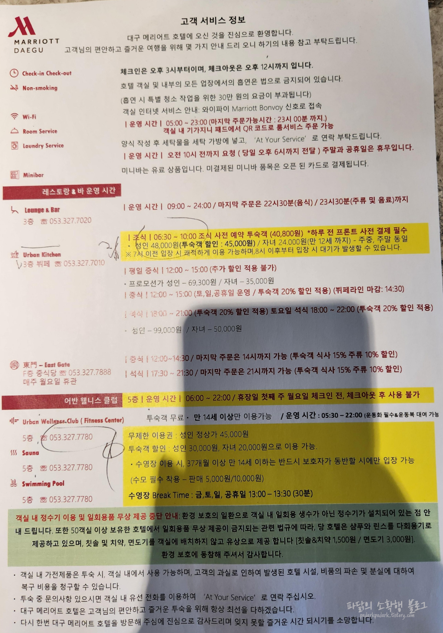 이렇게 대략 26시간 정도의 대구 메리어트 호캉스! 가 끝났습니다.