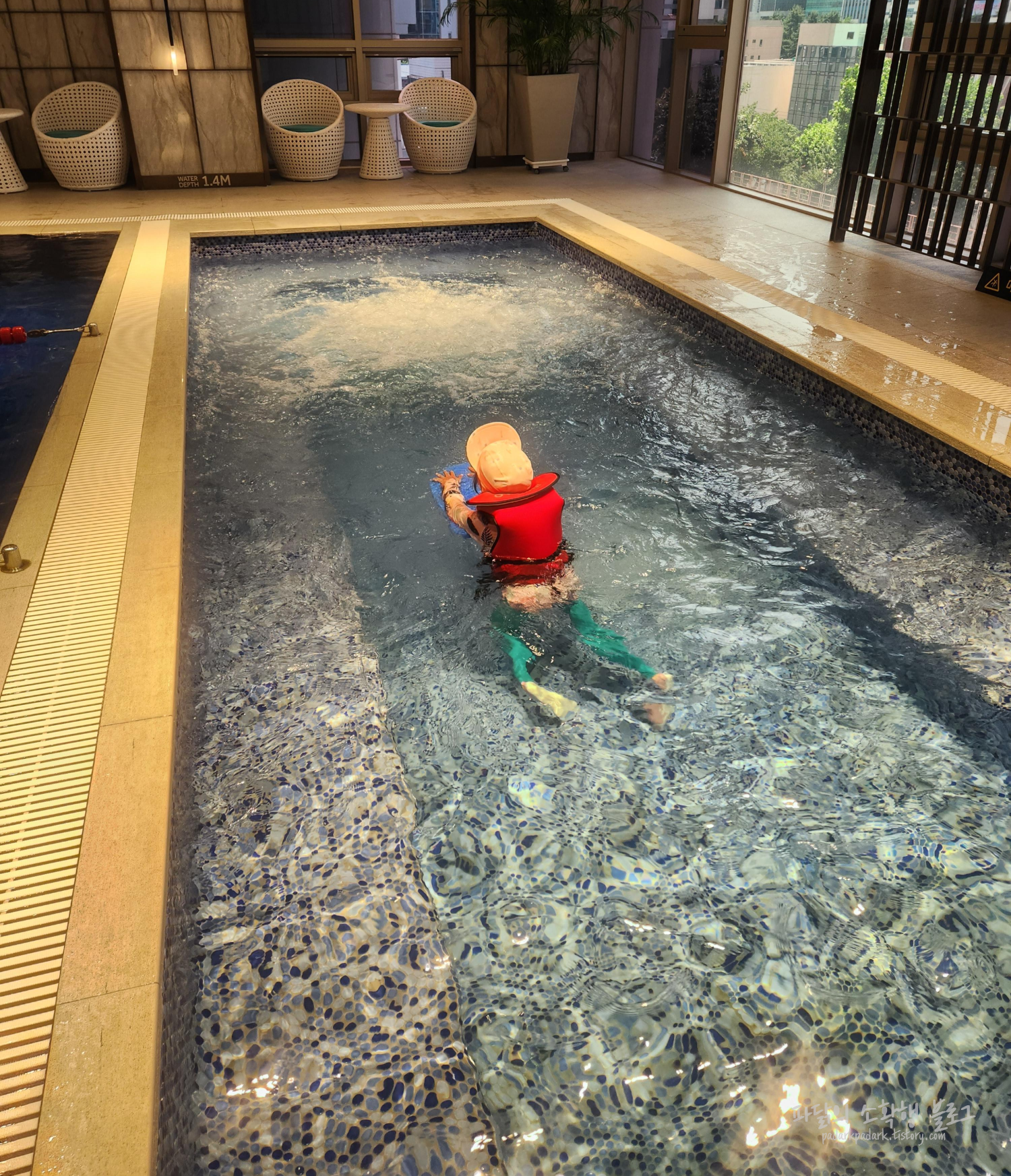 호텔 수영장이다보니 딱히 물놀이 기구가 있는 것도 아니고 튜브 같은 것도 못 쓰는데, 아이가 이제 물과 좀 친해졌는지 잘 놀아서 정말 제대로 호텔 에서만 지낸 호캉스를 하고 왔어요.