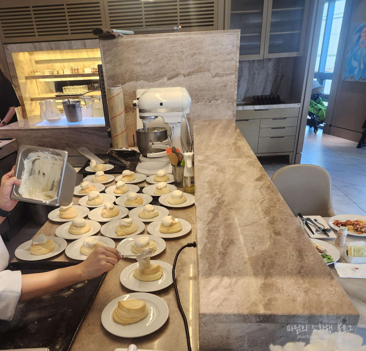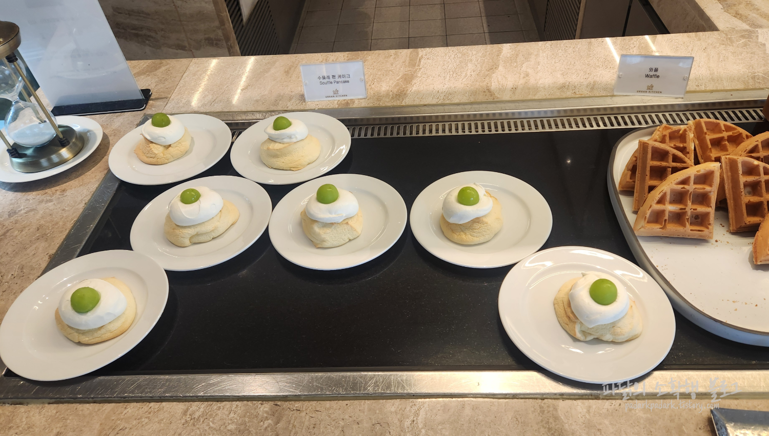 그리고 나름 대구 메리어트 시그니처인 수플레 팬케이크 입니다. 오븐 시간인 15분 마다 나오는데 수량이 한정적이라 사람이 많을 때는 바로바로 매진이에요. 맛도 맛있어요.
