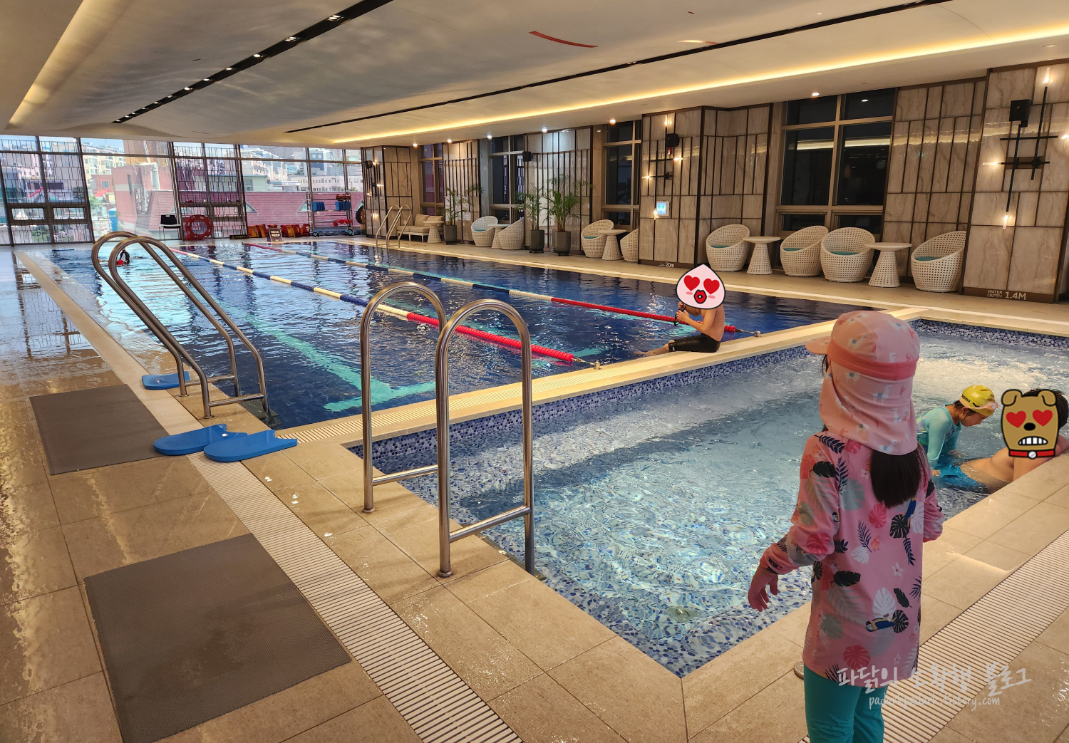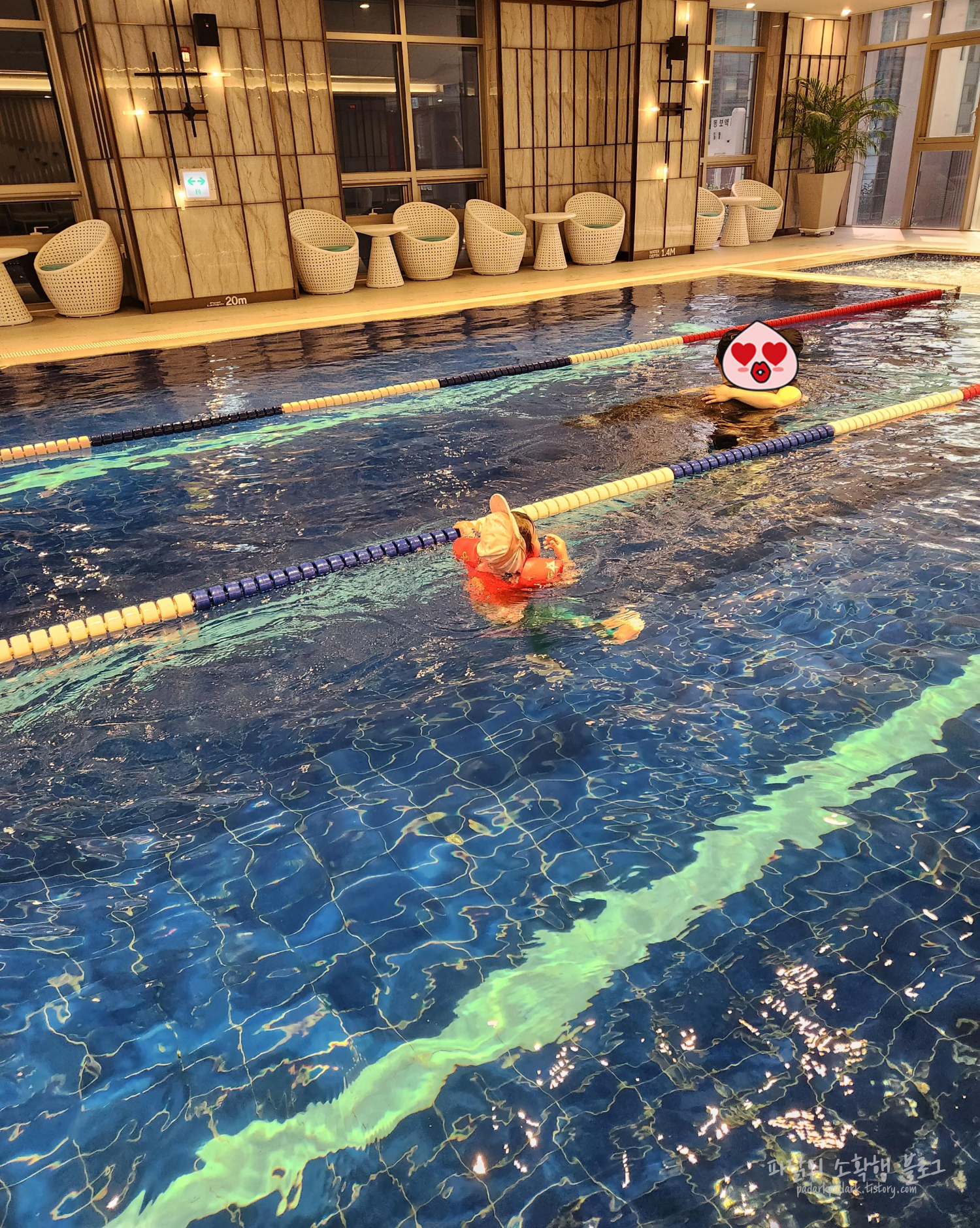실내 수영장도 유료로 운영되고 유료인 만큼 관리도 좋아요. 사람도 적당한 데다가 특히 체크아웃/체크인 시기에 갔더니 여유 있게 아이가 잘 놀고 왔습니다.